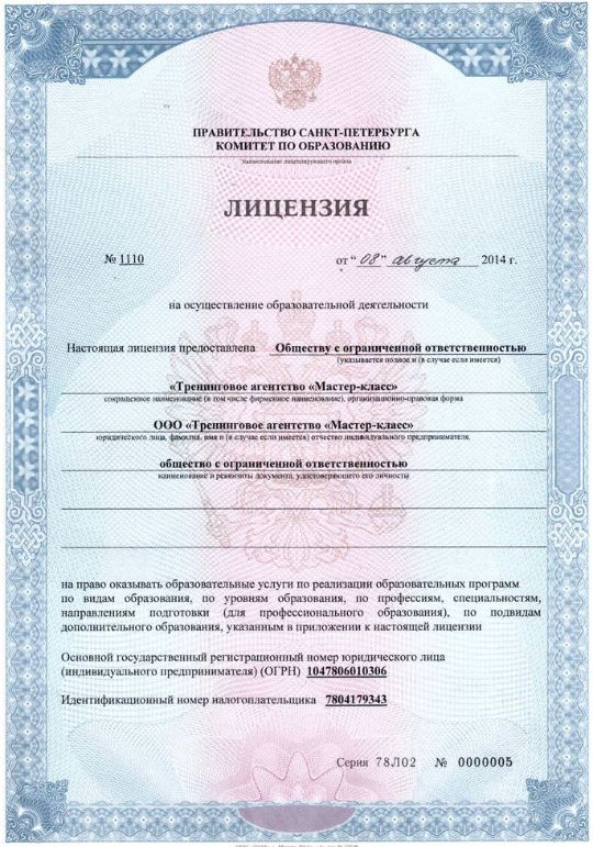 Рождение компании –регистрация НОУ «Мастер-класс».