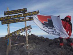 Флаг МК на двух вершинах. Руководитель компании Алексей Сергеев совершил восхождение на две вершины. Поднят флаг: Танзания, Малая Меру, высота 3801 м., и Меру, высота 4562 м.