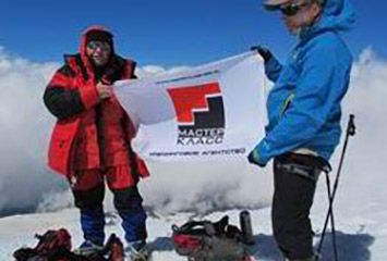 Поднят флаг МК: Россия, западная вершина Эльбрус, высота 5642 м.