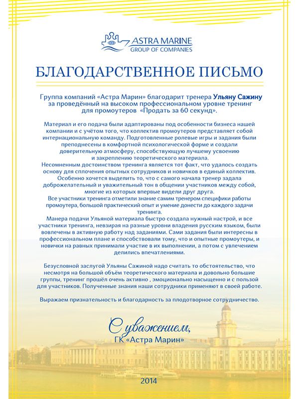 Заключены договора с заказчиками из Эстонии, агентство вышло на международный рынок. Проведено несколько тренингов в Турции.